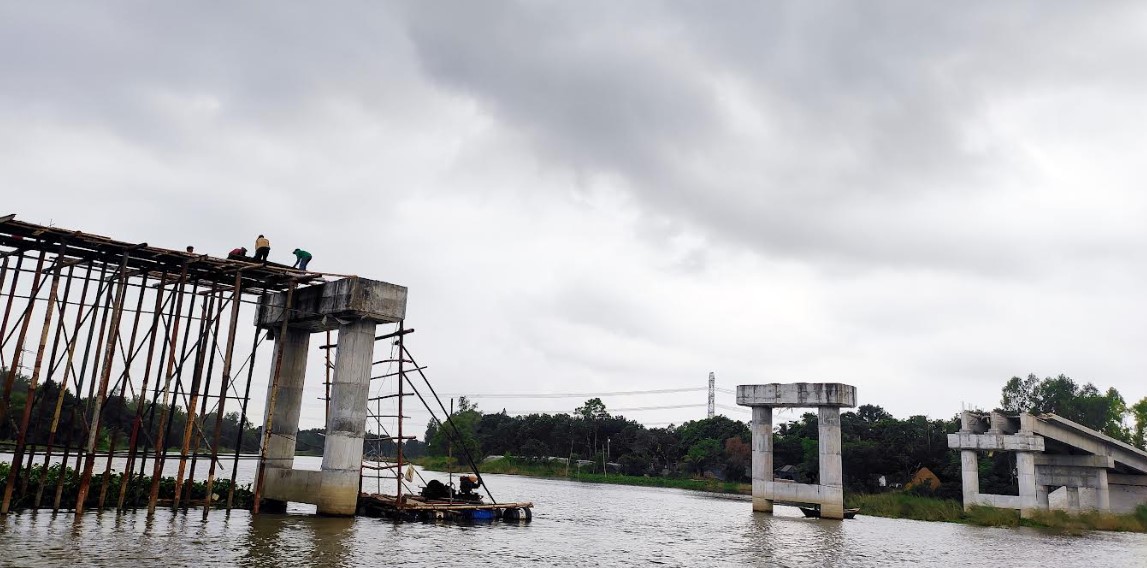 বড়াল নদীর ওপর এগিয়ে চলেছে সেতুর কাজ