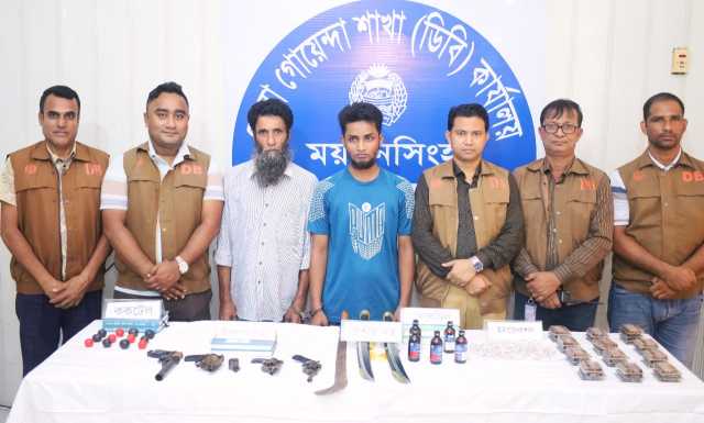 ময়মনসিংহে রিভলবার, পিস্তল, ককটেল, দেশীয় অস্ত্র মাদকসহ ২ জন গ্রেফতার ।