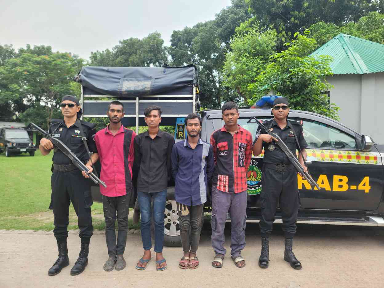 র্যাব পরিচয়ে শ্রমিকদের বেতন বোনাস ছিনতাই এর ঘটনার মূলহোতা হামিম সহ ০৫ জন ডাকাত সদস্য গ্রেপ্তার