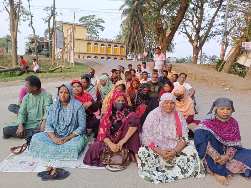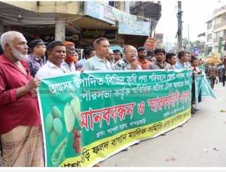 উৎপাদিত ফসলে অতিরিক্ত টোল আদায়ের প্রতিবাদে মানববন্ধন