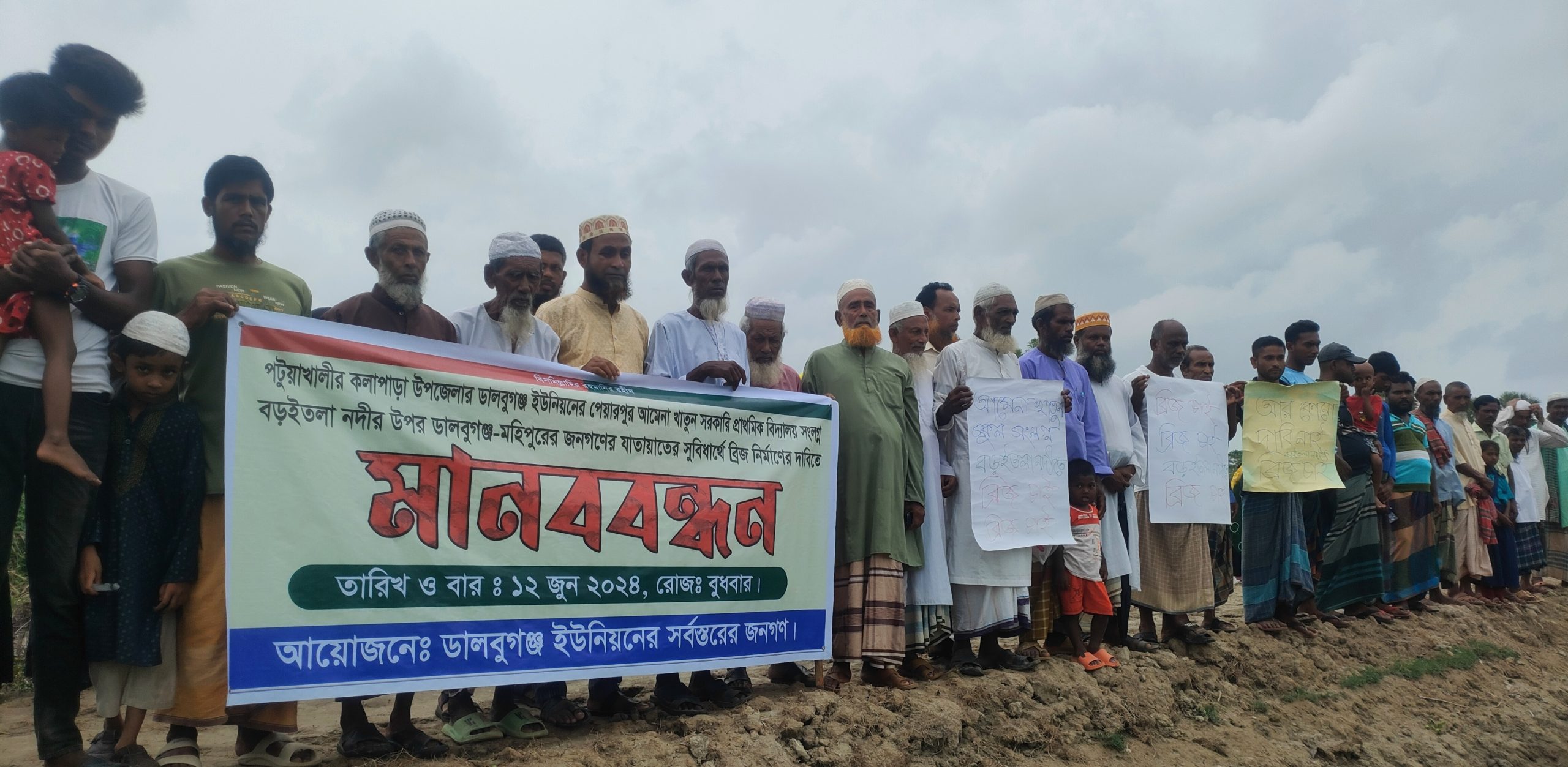 কলাপাড়ায় ব্রীজের দাবীতে মানববন্ধন ও সমাবেশ