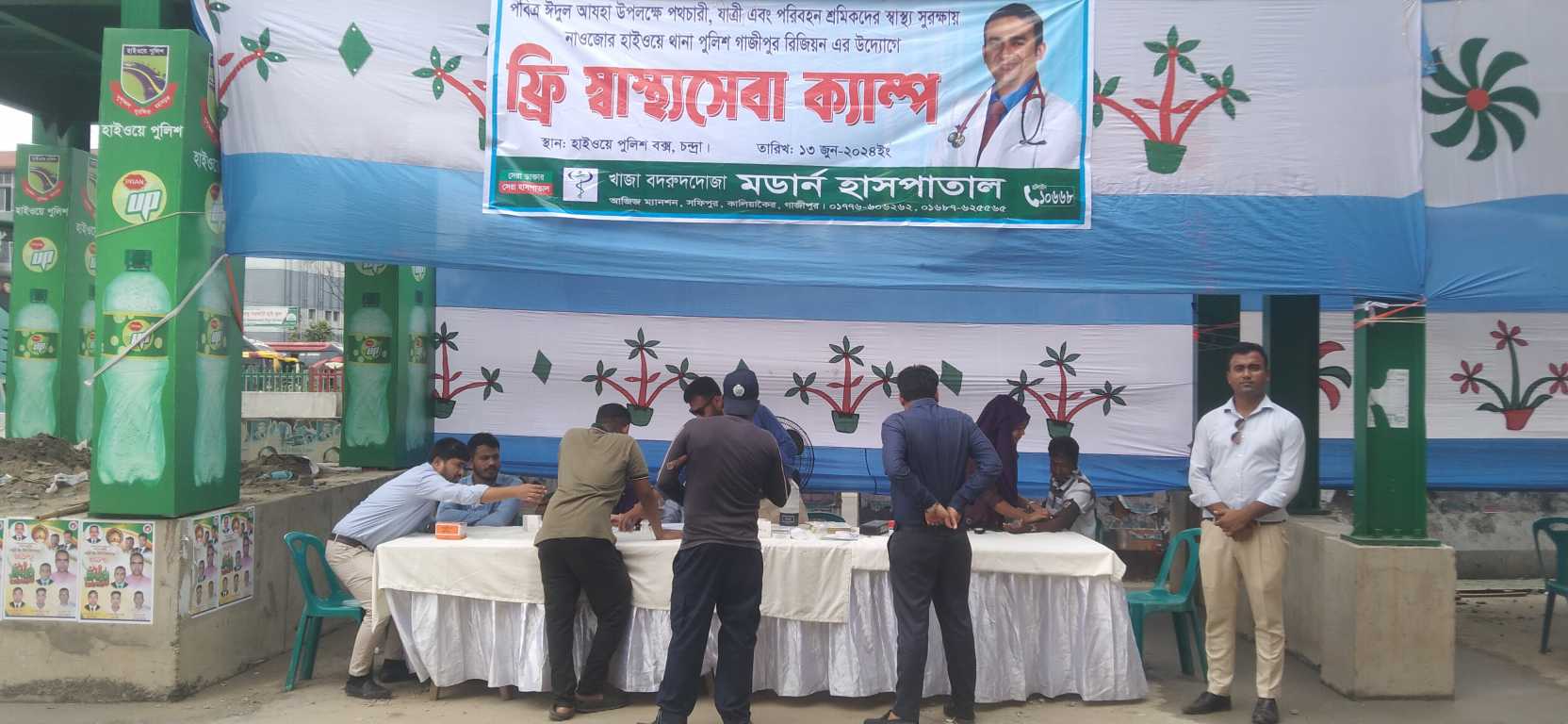 ঈদে স্বাস্থ্য সেবায় চন্দ্রায় স্বাস্থ্যকর্মীর টিম বসালেন নাওজোর হাইওয়ে থানা পুলিশ