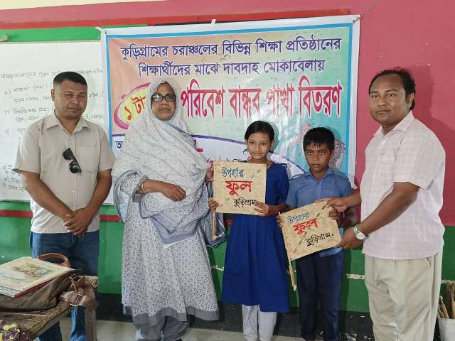 কুড়িগ্রামে ১ টাকায় ১০ টি পরিবেশ বান্ধব পাখা বিক্রি করছে ফুল