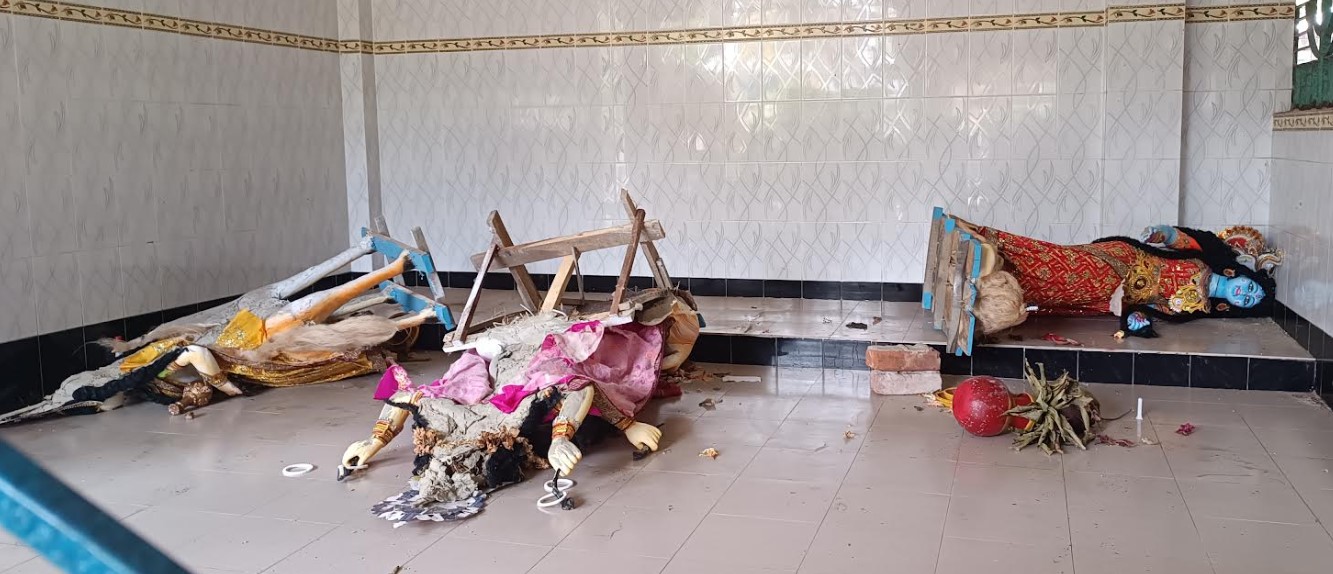 মন্দিরের প্রতিমা ফেলে উল্টে রেখে গেছে দুস্কৃতকারীরা