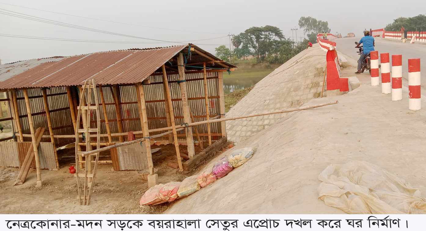 মদন সড়কে বয়রাহালা সেতুর এপ্রোচ দখল করে ঘর নির্মাণ