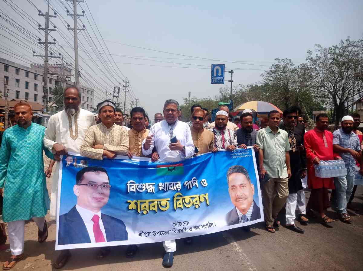 তীব্র তাপদাহে পানি, শরবত ও লিফলেট বিতরণ করলো বিএনপি
