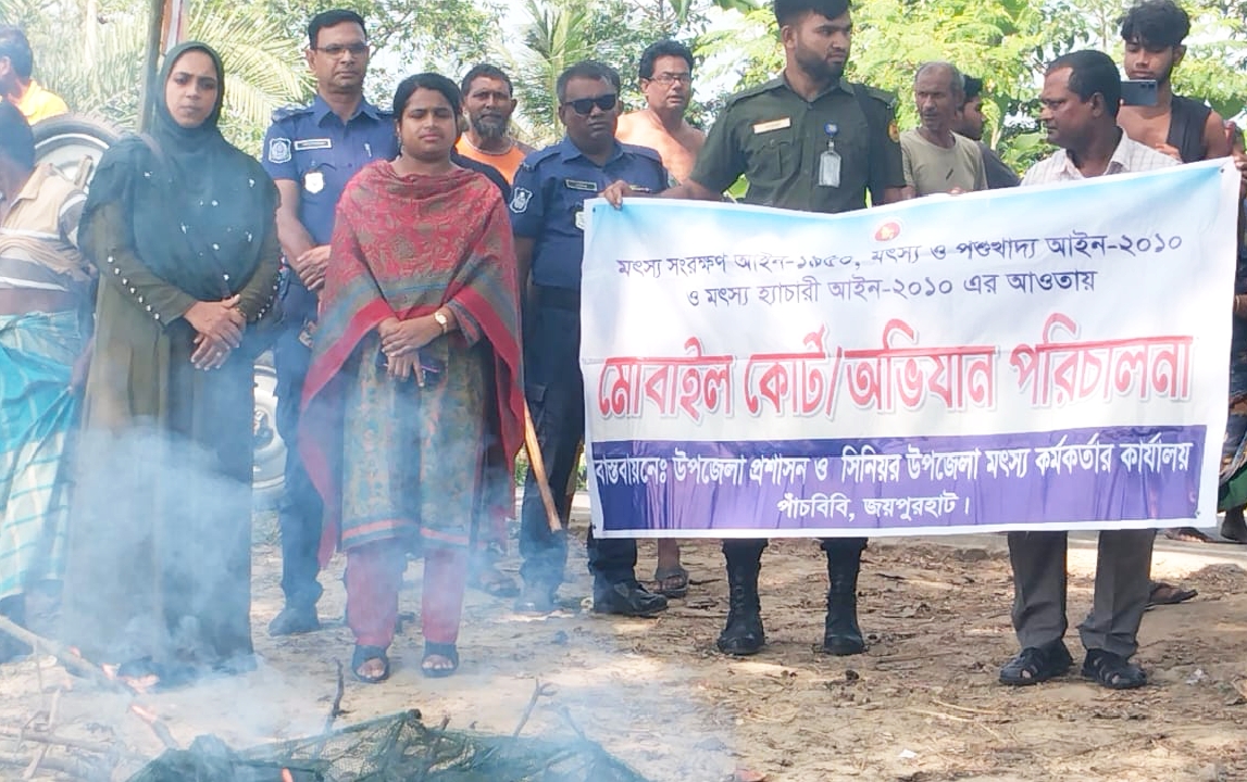 পাঁচবিবিতে চায়না দুয়ারী জাল জব্দের পর আগুনে পুড়ে ধ্বংস