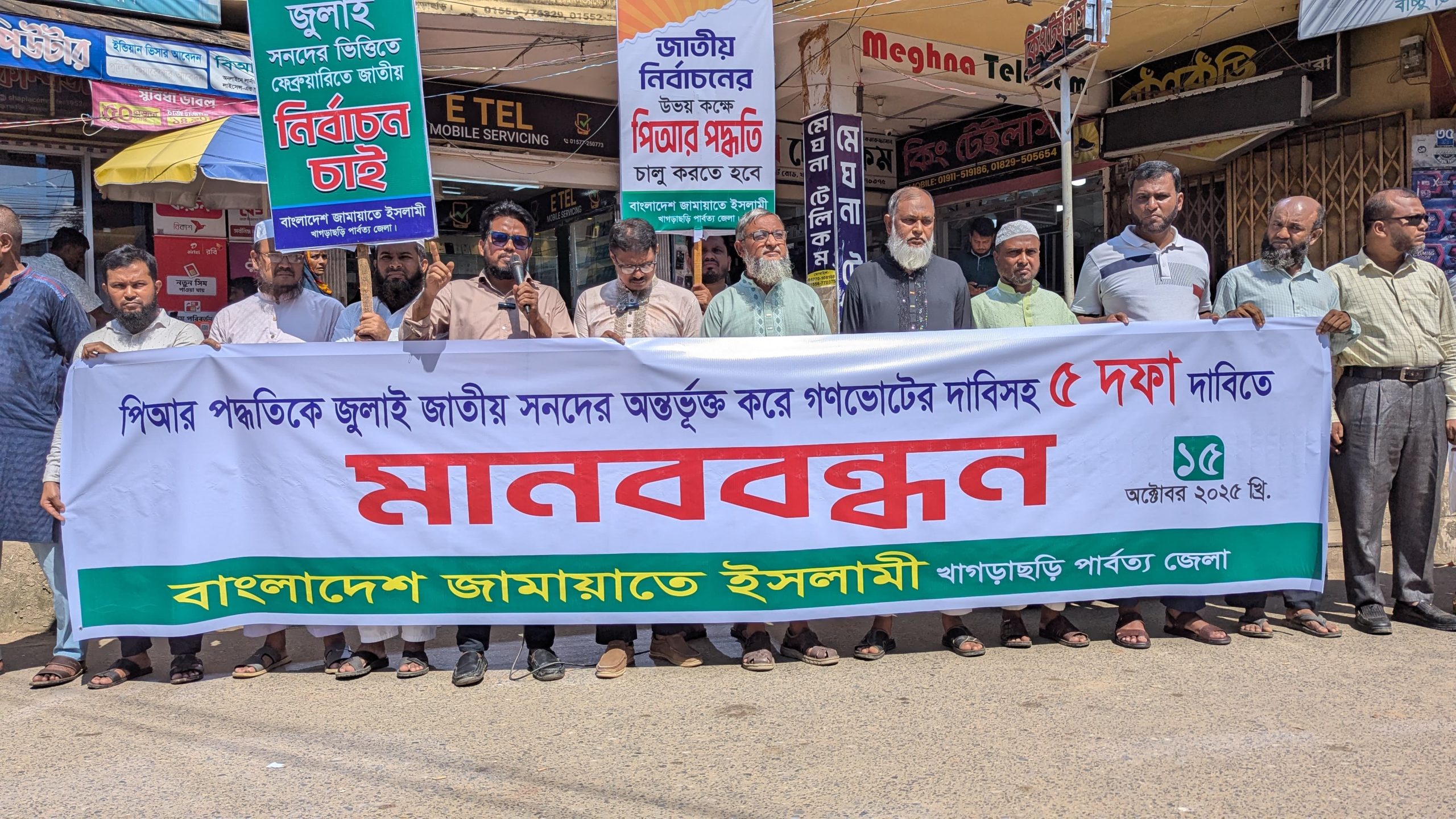 খাগড়াছড়িতে পিআরসহ ৫ দফা দাবিতে বাংলাদেশ জামায়াতের মানববন্ধন