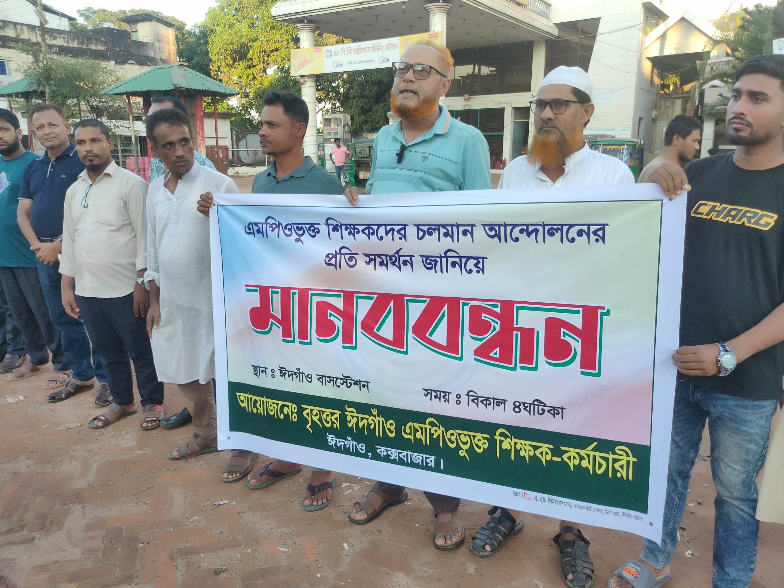 ঈদগাঁওয়ে এমপিওভুক্ত শিক্ষকদের সমর্থনে মানববন্ধন