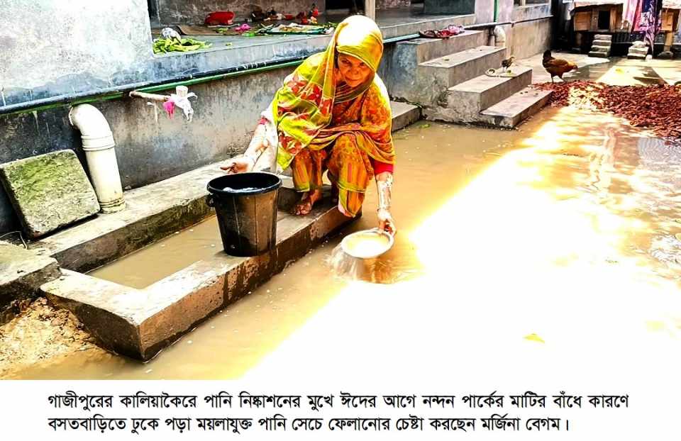 পানি নিষ্কাশনের মুখে নন্দন পার্কের বাঁধ, জলাবদ্ধতায় এলাকাবাসীর দুর্ভোগ