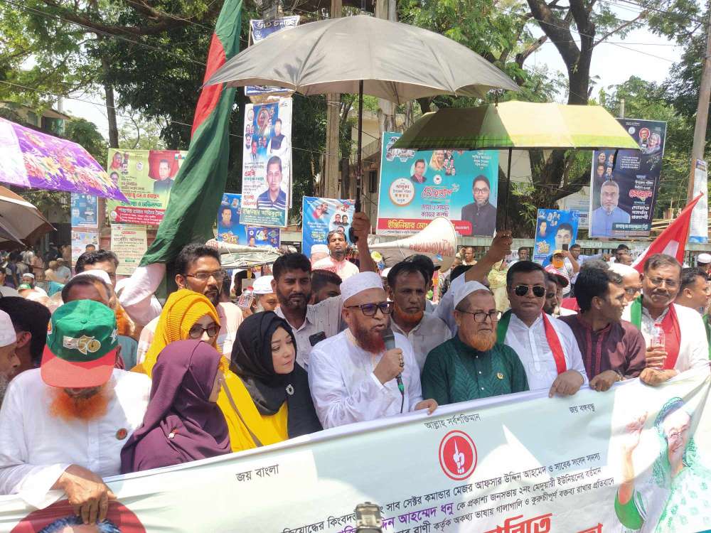 ভালুকায় মেজর আফসার ও এমপি ধনুর বিরুদ্ধে কুরুচিপূর্ণ বক্তব্যের প্রতিবাদে মানববন্ধন
