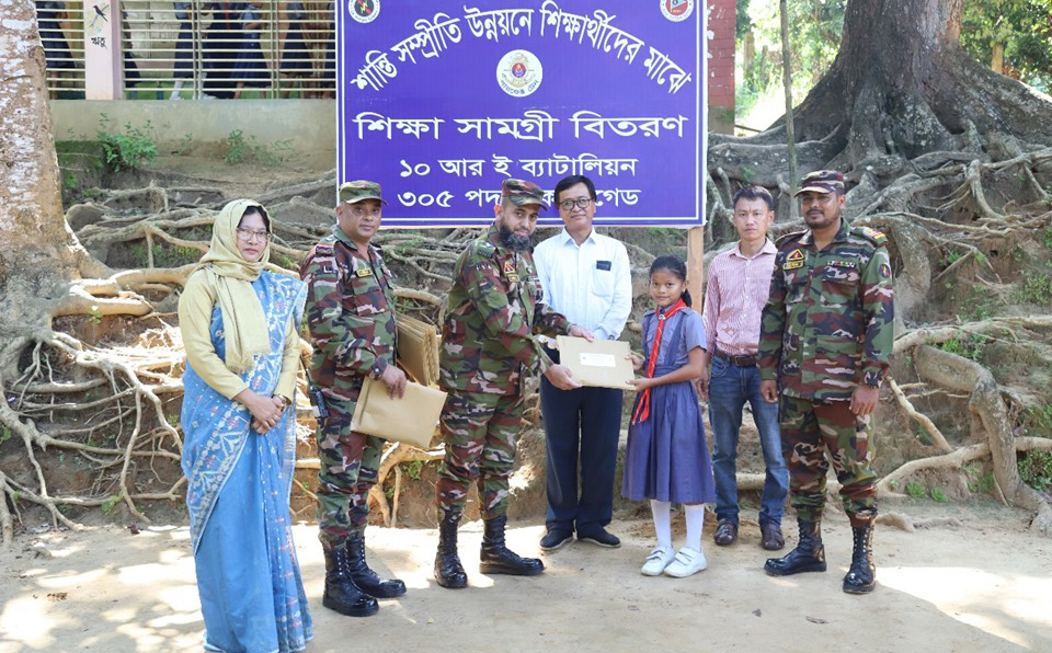 সেনাবাহিনীর স্নেহ: কাপ্তাইয়ে শিক্ষার্থীদের মাঝে শিক্ষা সামগ্রী বিতরণ