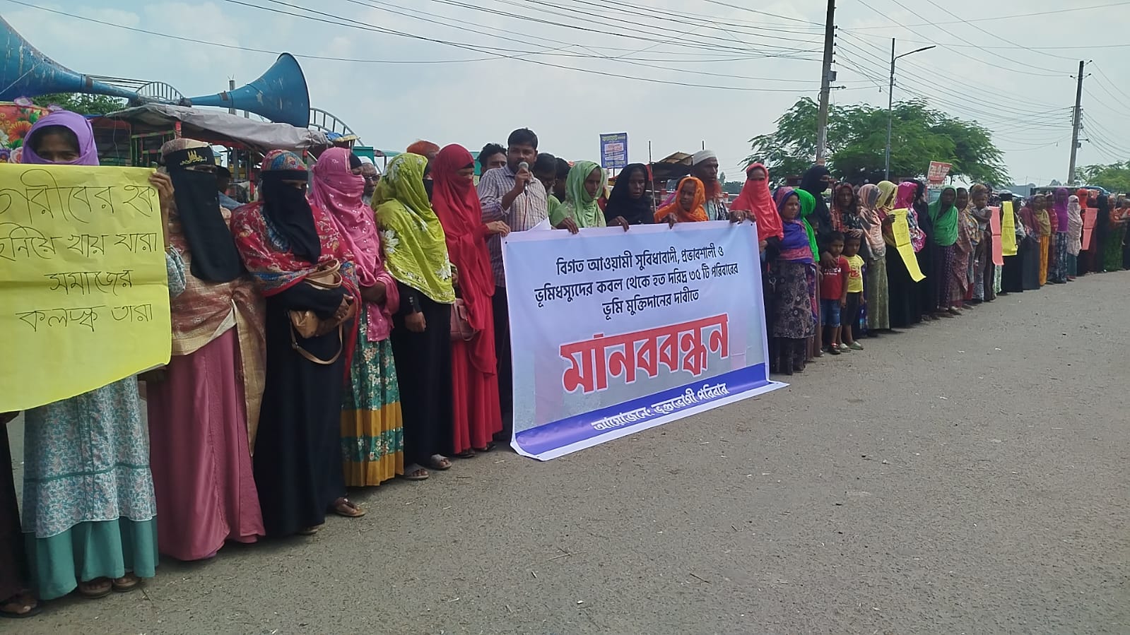 জামালপুরে ভূমি মুক্তিদানের দাবীতে মানববন্ধন ও স্মারকলিপি প্রদান