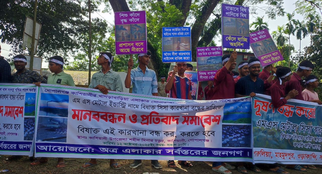 কাশিয়ানীতে বিষাক্ত সীসা কারখানা বন্ধের দাবিতে মানববন্ধন ও প্রতিবাদ সভা
