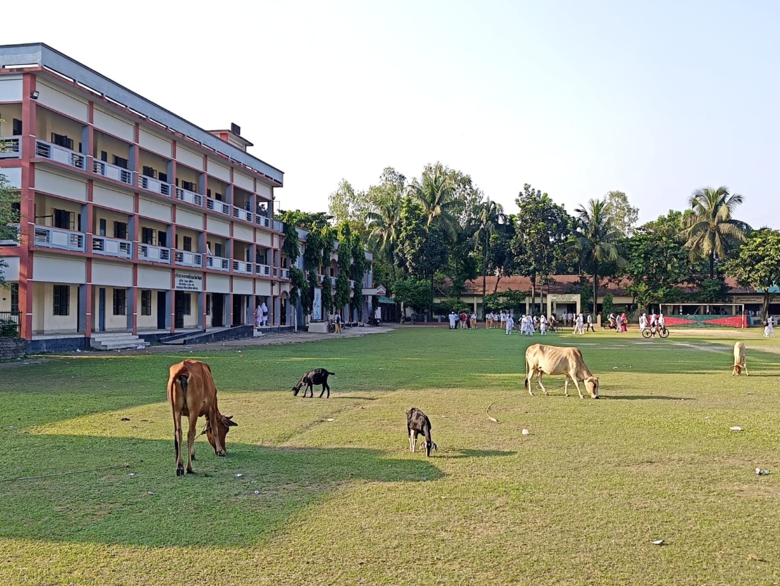 বিদ্যালয়ের মাঠে গরু-ছাগলের চারণ, শ্রেণিকক্ষে প্রধান শিক্ষকের সংসার