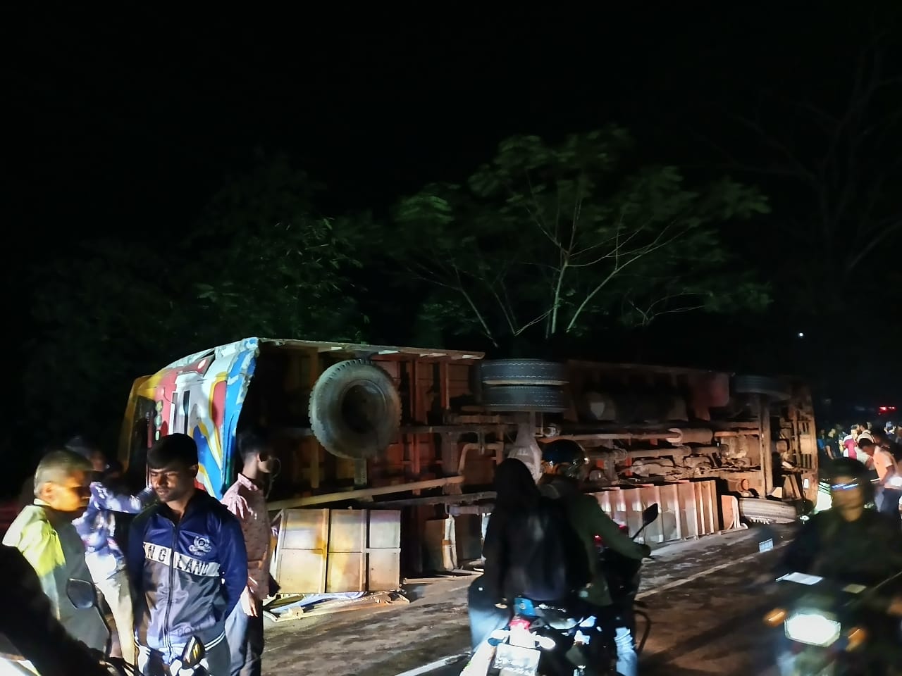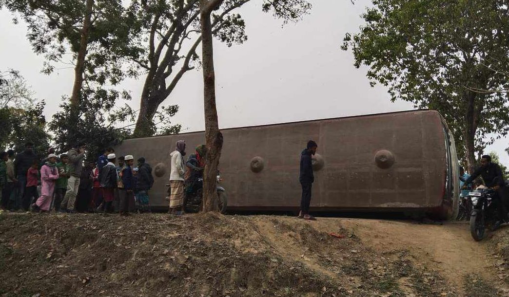 নিয়ন্ত্রণ হারিয়ে সড়কে উল্টে গেল বাস