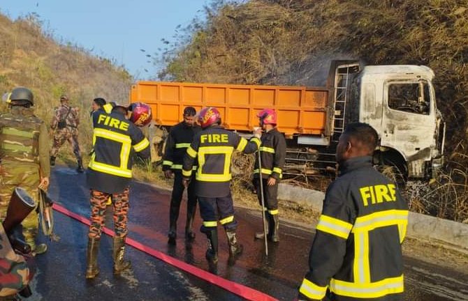 বান্দরবানে পন্য পরিবহনের ট্রাকে আগুন দিল কেএনএফ সন্ত্রাসীরা