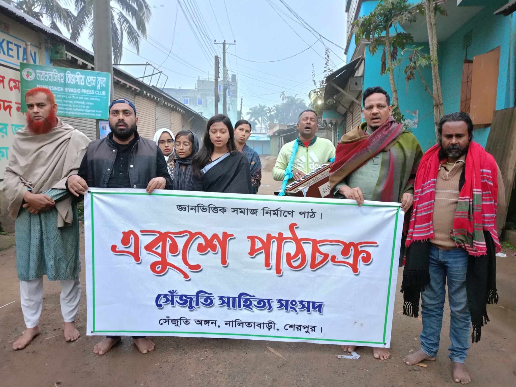 একুশের চেতনায় একুশের প্রথম প্রহরে পালিত হলো একুশে পাঠচক্রের প্রভাতফেরী