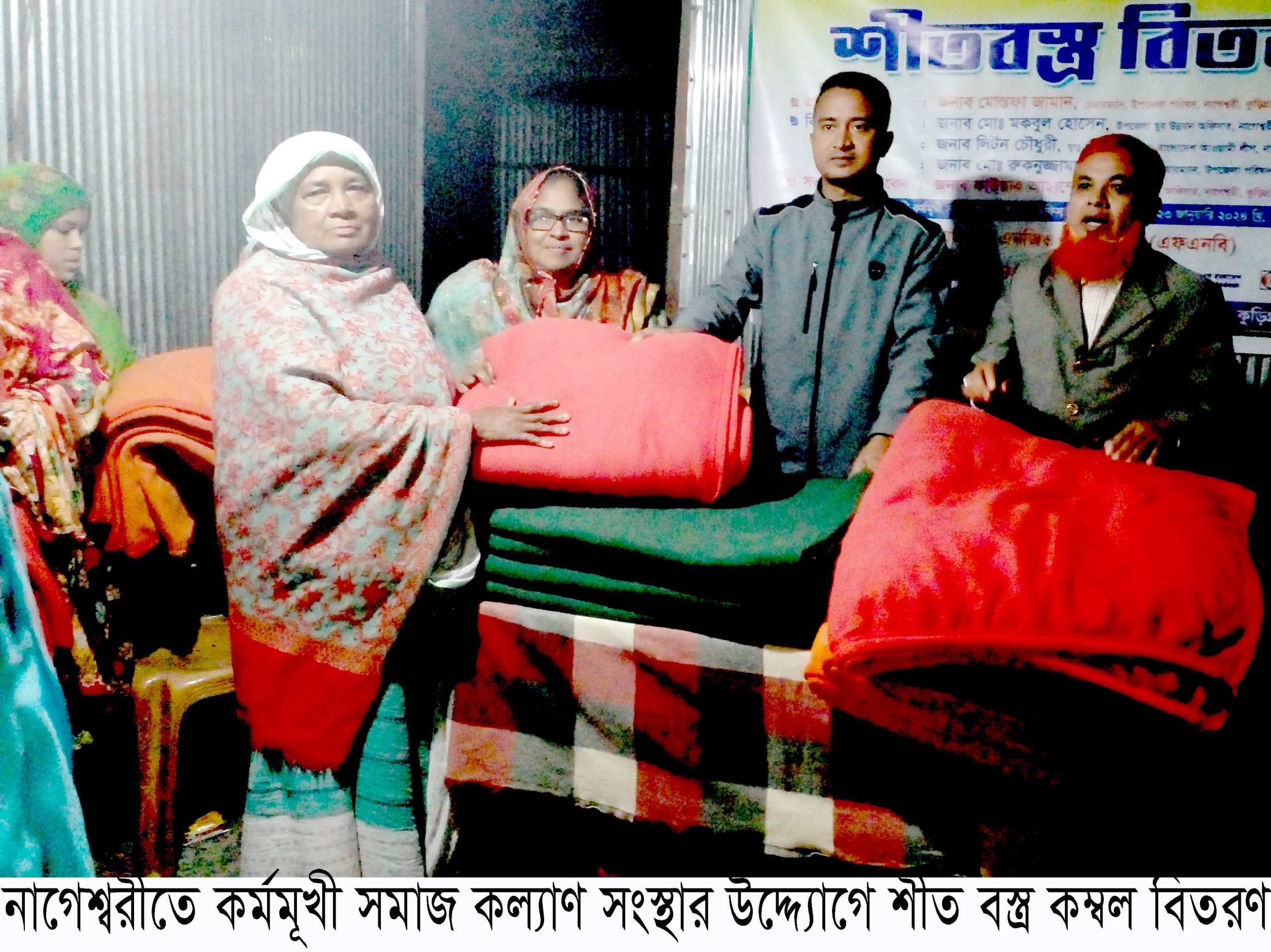 নাগেশ্বরীতে কর্মমূখী সমাজ কল্যাণ সংস্থার উদ্দ্যোগে শীত বস্ত্র কম্বল বিতরণ
