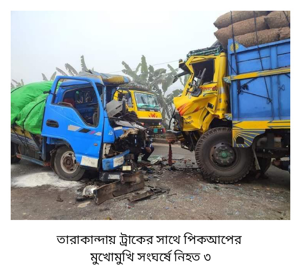 ময়মনসিংহে ট্রাকের সাথে পিকআপের মুখোমুখি সংঘর্ষ : নিহত ৩