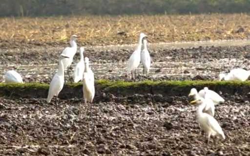 চলনবিলে বিস্তীর্ণ মাঠে শোভা পাচ্ছে সাদা বক পাখির ঝাঁক