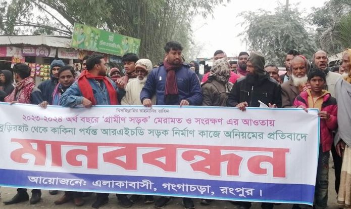 রংপুরে সড়কের কাজে অনিয়ম-দুর্নীতির প্রতিবাদে মানববন্ধন