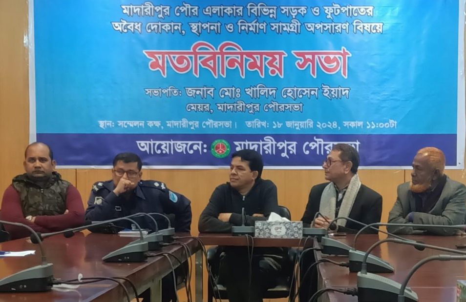 মাদারীপুরে সড়কে অবৈধ স্থাপনা ও নির্মাণ সামগ্রী অপসারণ বিষয়ে মতবিনিময় সভা