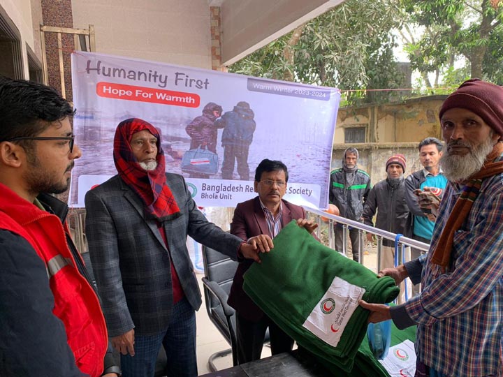 শীতার্তদের মধ্যে ভোলা রেড ক্রিসেন্ট ইউনিটের শীতবস্ত্র বিতরণ