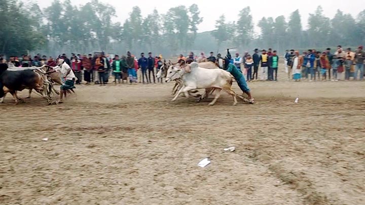 জামালপুরে হারিয়ে যেতে বসা মইদৌড় দেখতে মানুষের ঢল