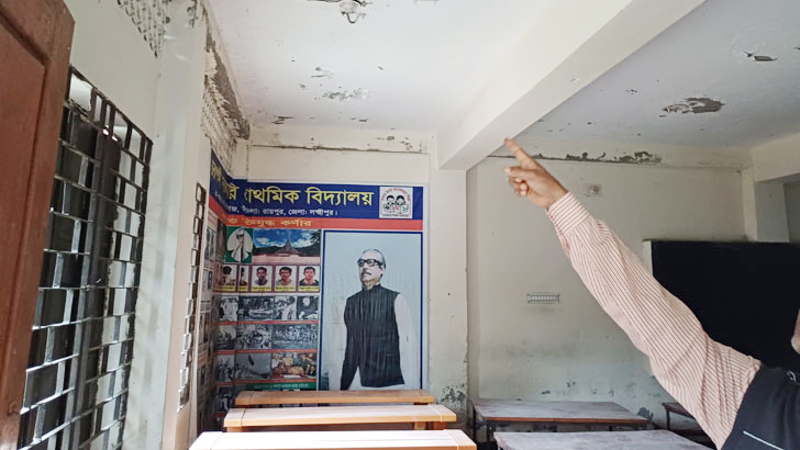 রায়পুরে জরাজীর্ণ ভবণে শিশুদের ক্লাস ও পাঠদান