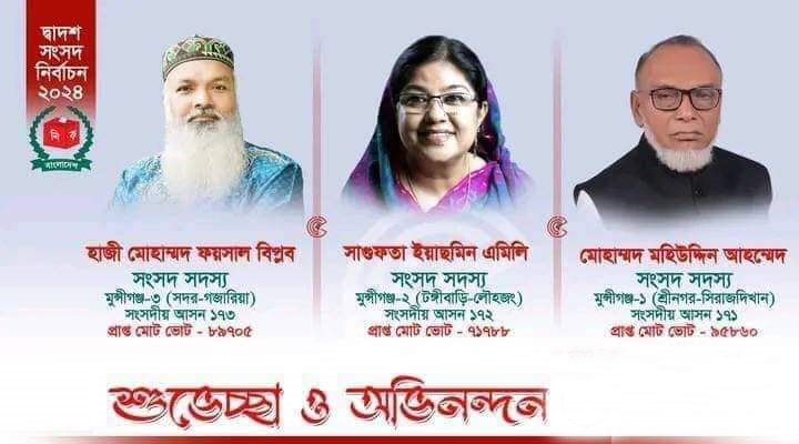 মুন্সীগঞ্জে স্বতন্ত্রের এক ও নৌকার দুই প্রার্থী বিজয়ী