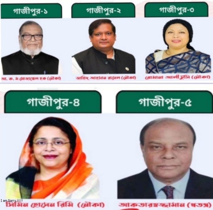 গাজীপুরে পাচঁটি আসনের মধ্যে চারটতিে নৌকা ,একটতিে স্বতন্ত্র প্রার্থী বজিয়ী