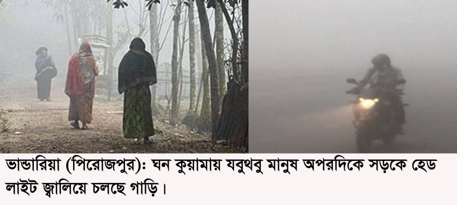 কুয়াশার চাদরে মোড়ানো ভান্ডারিয়া:হেড লাইট জ্বালিয়ে চলছে গাড়ি