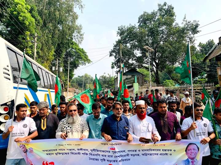 অগ্নিসন্ত্রাস ও নৈরাজ্যের প্রতিবাদে সিরাজগঞ্জে উন্নয়ন ও শান্তি সমাবেশ