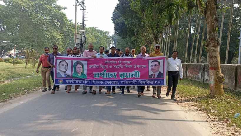 জাতীয় বিপ্লব ও সংহতি দিবসে রাবির জাতীয়তাবাদী শিক্ষক ফোরামের র্যালী