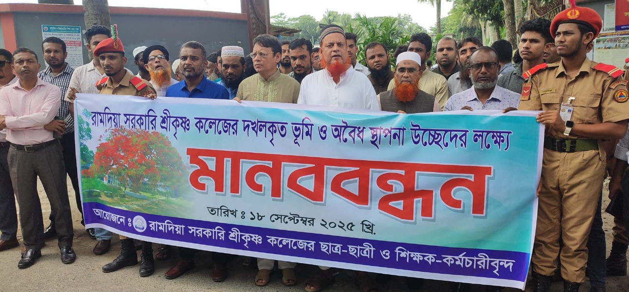 গোপালগঞ্জে শ্রীকৃষ্ণ কলেজের বেদখলকৃত জমি উদ্ধারে মানববন্ধন