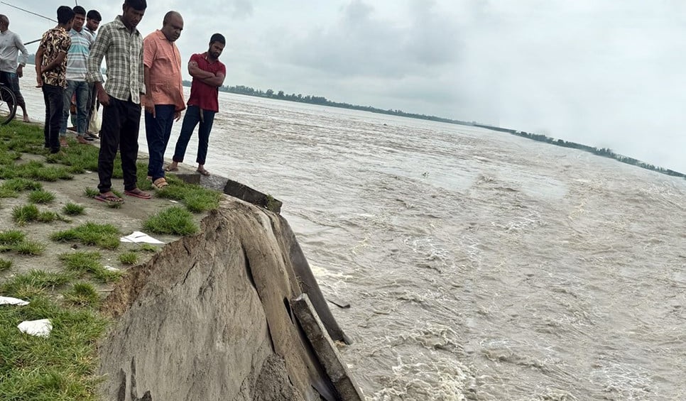 বাঁধে ভাঙনে হুমকির মুখে গঙ্গাচড়ার মহিপুর তিস্তা সেতু