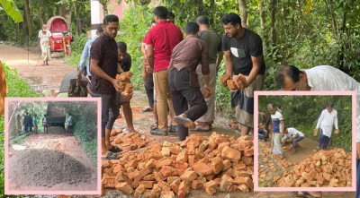 ফটিকছড়িতে ভাঙা সড়ক সংস্কারে জামায়াত কর্মীরা