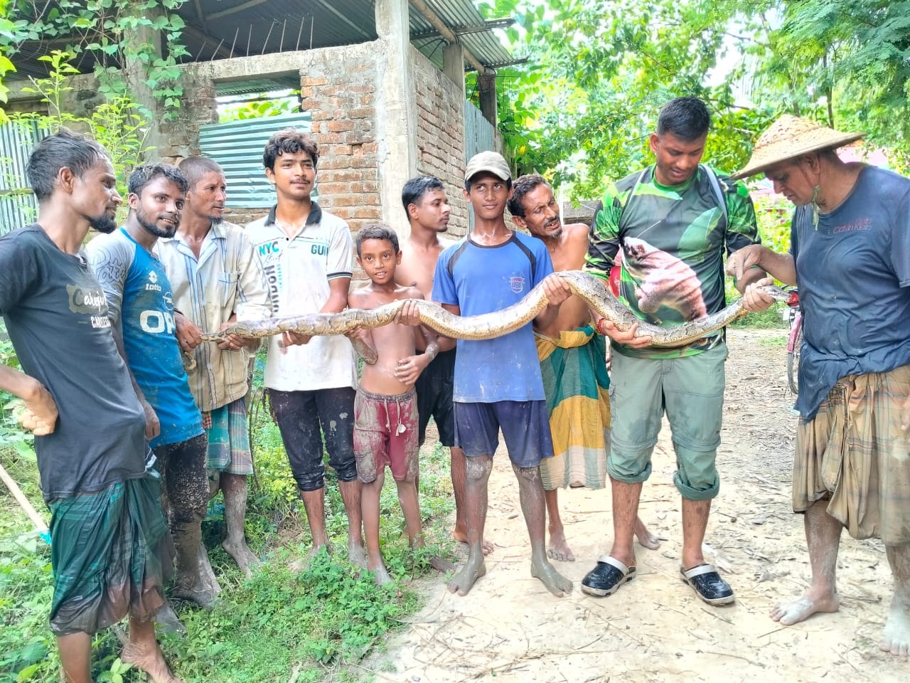 কমলগঞ্জে ধানখেত থেকে ৭ ফুট লম্বা অজগর উদ্ধার