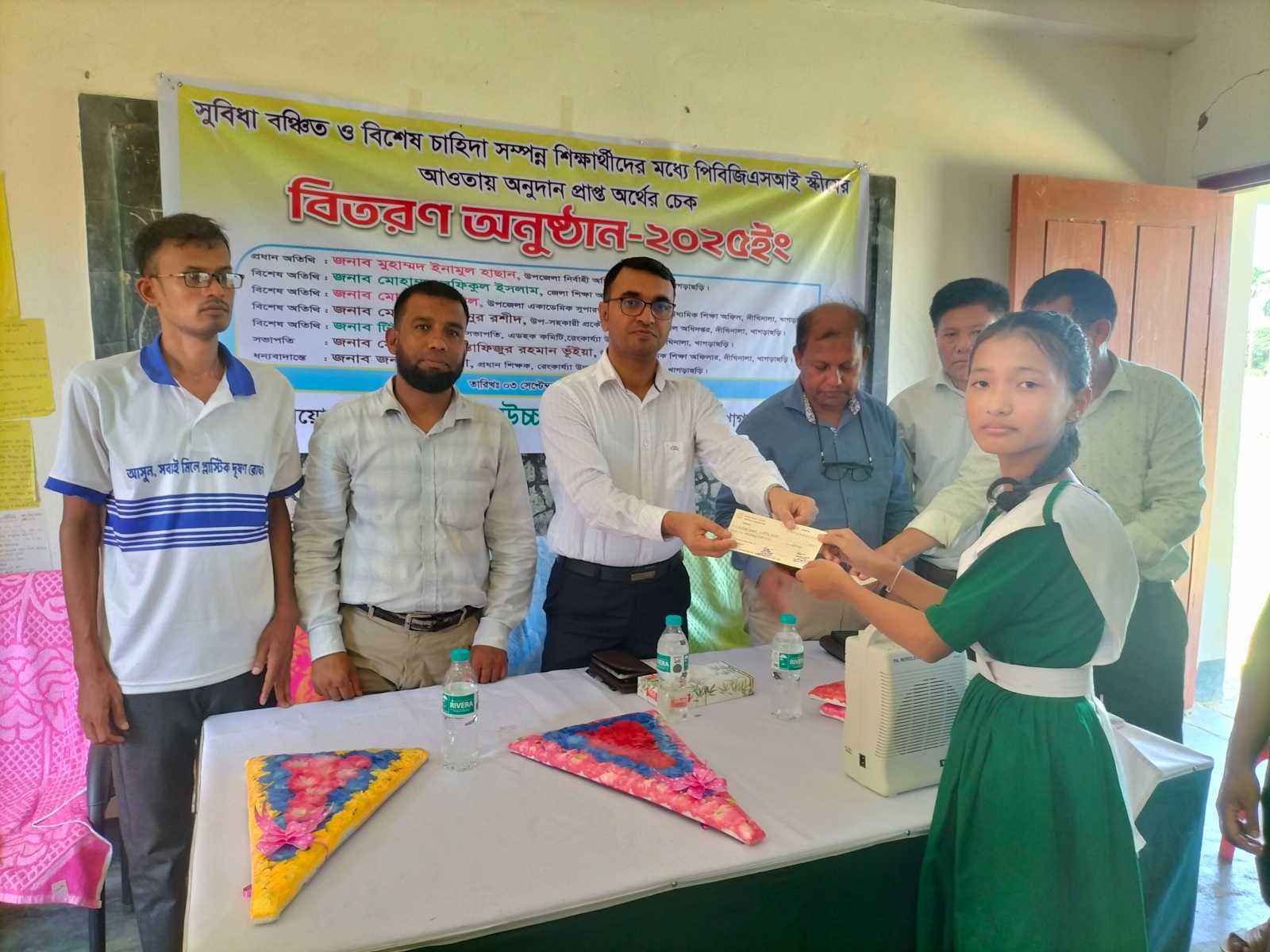 দীঘিনালায় সুবিধা বঞ্চিত ও বিশেষ চাহিদা সম্পন্ন শিক্ষার্থীদের মধ্যে পিবিজিএসআই স্কীমের অনুদানের চেক বিতরন