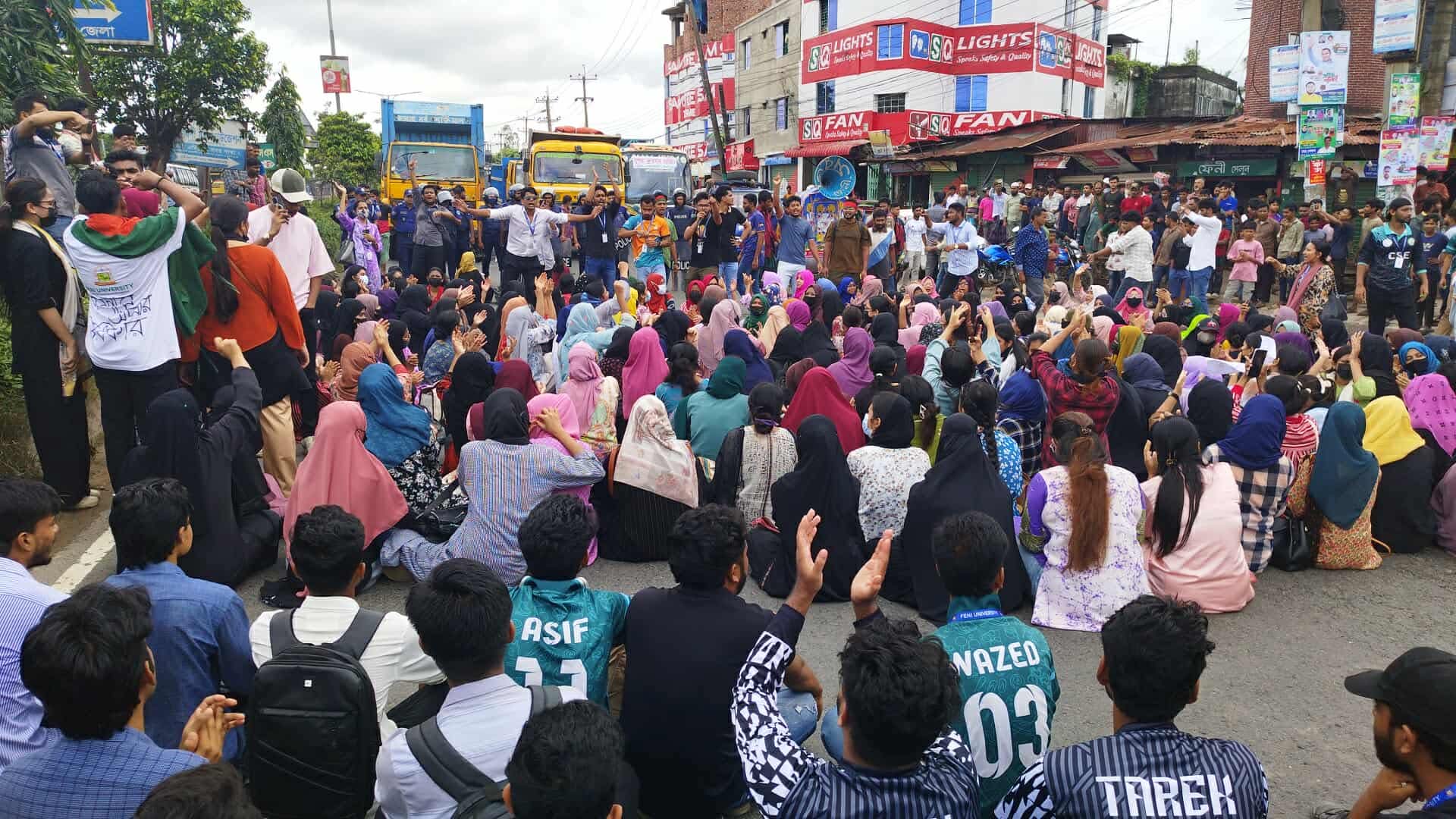 ঢাকা-চট্টগ্রাম মহাসড়ক অবরোধ করে বিক্ষোভ করছেন ফেনী ইউনিভার্সিটি শিক্ষার্থীরা