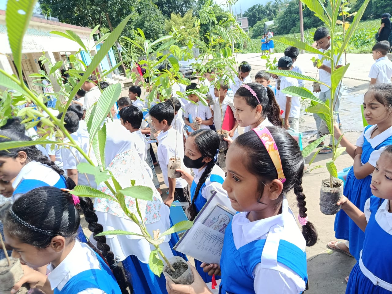 রাজারহাটে স্কুলের খেলার মাঠে আশ্রয়কেন্দ্র নির্মাণের প্রতিবাদে মানববন্ধন