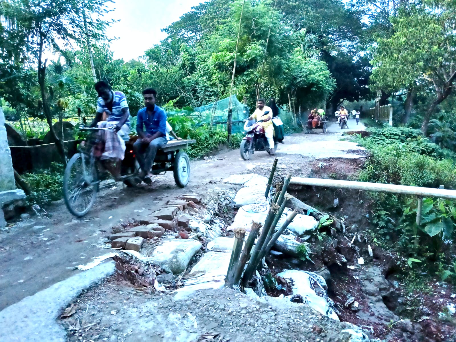 ত্রিশাল-ধানীখোলা সড়কে ধস, ভোগান্তিতে হাজারো মানুষ