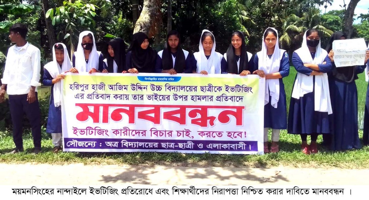 নান্দাইলে স্কুলছাত্রীকে ইভটিজিং: শিক্ষার্থীদের মানববন্ধন