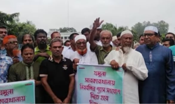 যমুনা সার কারখানায় গ্যাস সংযোগের দাবিতে মানববন্ধন