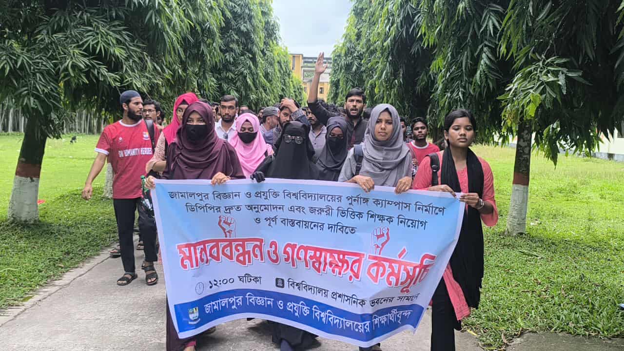 জামালপুর বিজ্ঞান ও প্রযুক্তি বিশ্ববিদ্যালয় শিক্ষার্থীদের মানববন্ধন