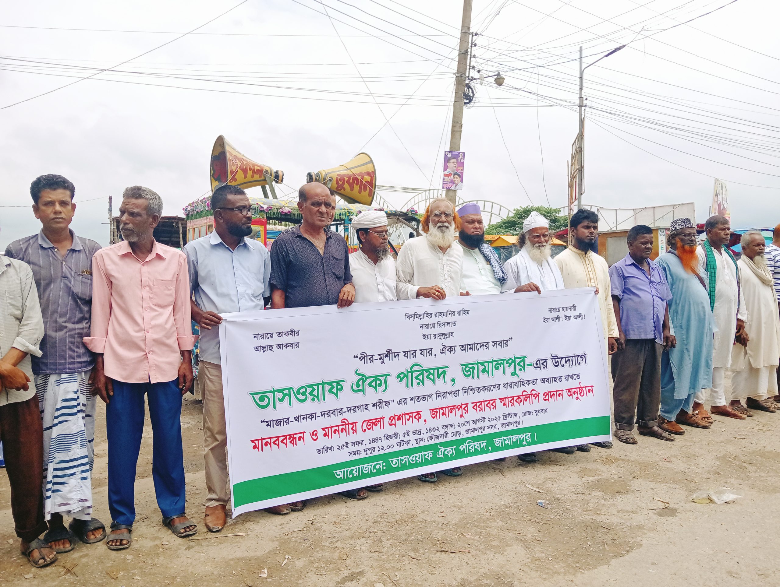 জামালপুরে মাজার নিরাপত্তার দাবীতে মানববন্ধন ও স্মারকলিপি প্রদান