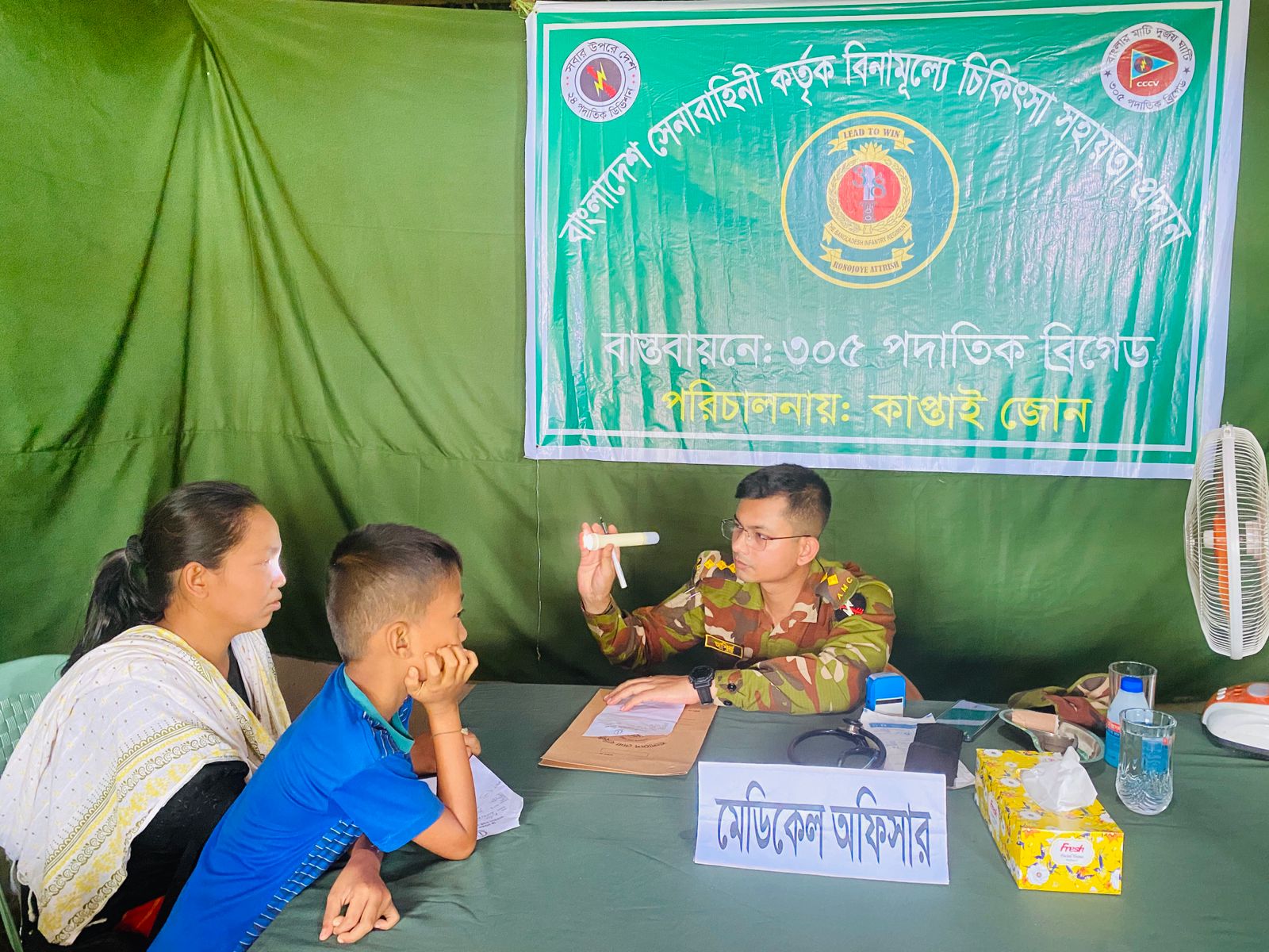 রাজস্থলী উপজেলার মিতিঙ্গাছড়ি পাড়াতে বাংলাদেশ সেনাবাহিনীর বিনামূল্যে চিকিৎসা সেবা প্রদান