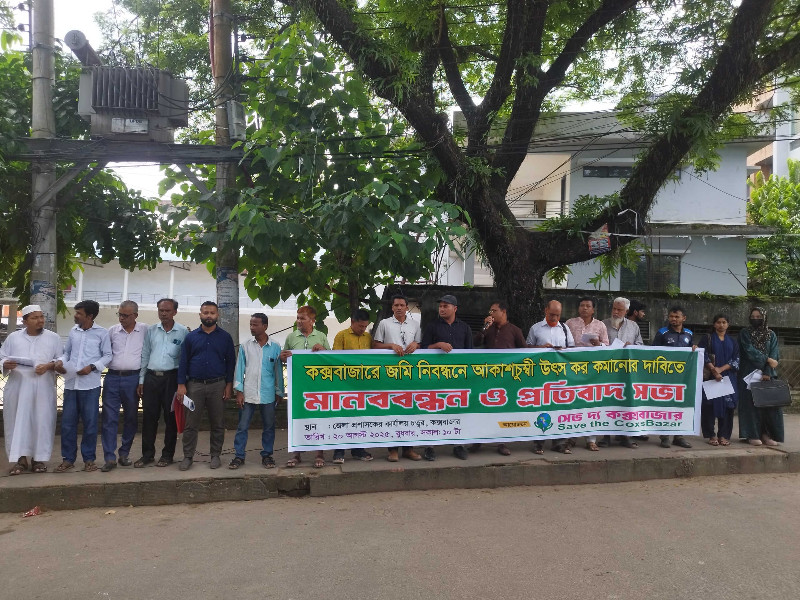 কক্সবাজারে জমি নিবন্ধনে আকাশচুম্বী উৎস কর কমানোর দাবিতে মানববন্ধন ও প্রতিবাদ সভা অনুষ্ঠিত