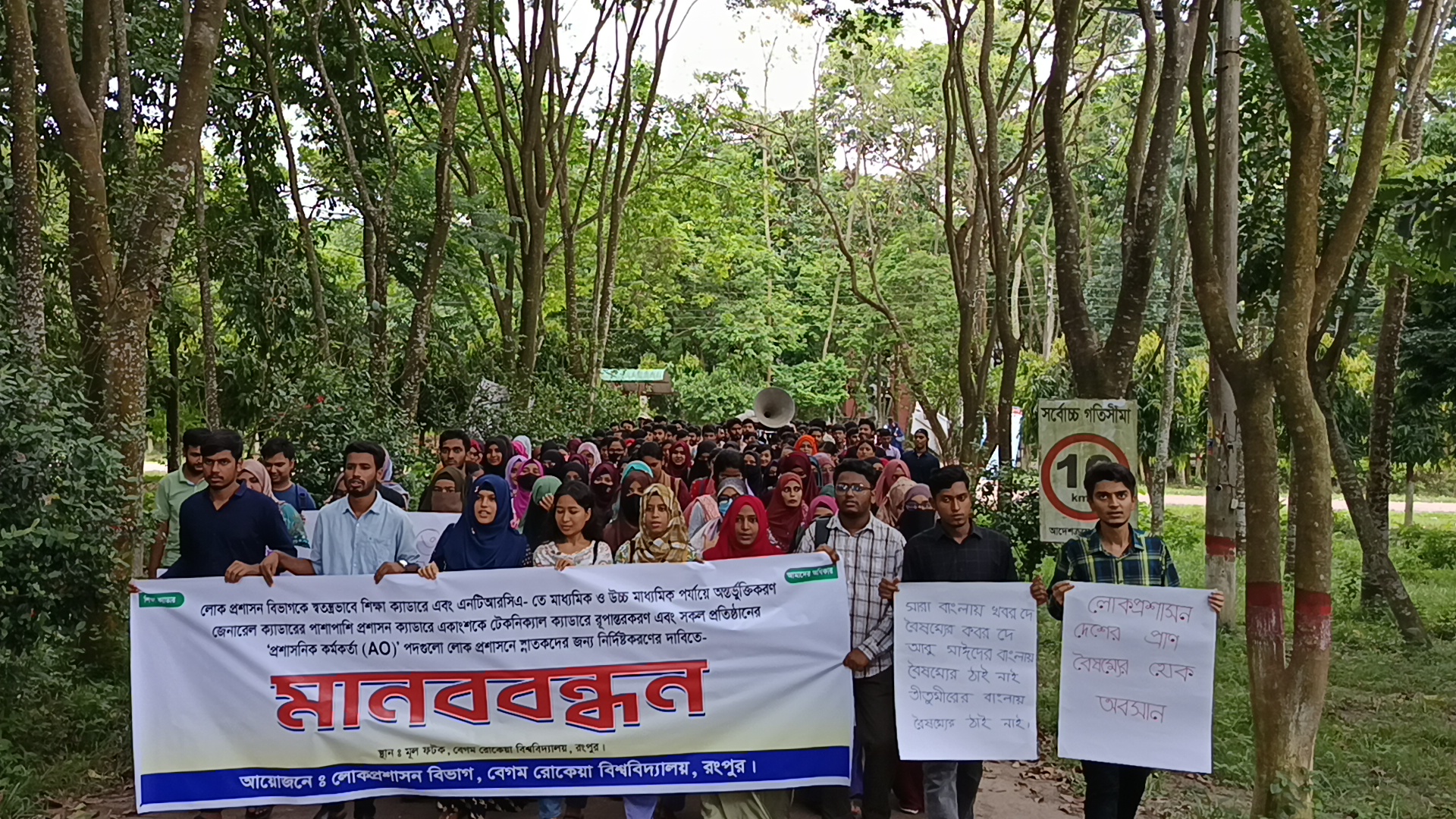 লোক প্রশাসনকে শিক্ষা ক্যাডারে অন্তর্ভুক্তির দাবিতে, বেরোবিতে মানববন্ধন